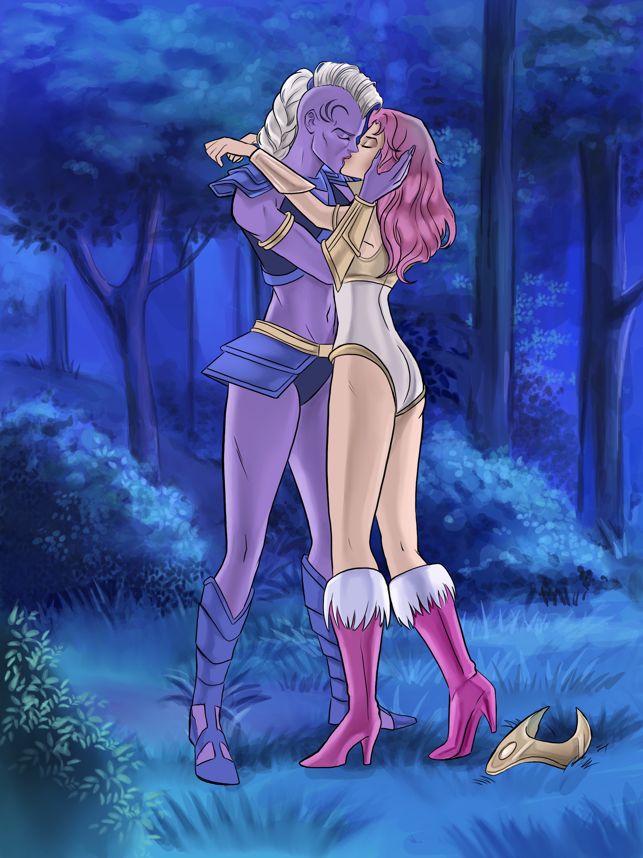 From what she understood, this beautiful goddess fought alongside Adam's sister Adora, against the Horde on Etheria. Teela had only briefly seen what She-Ra's strength could do against the forces of evil, and the thought of being held in those arms...